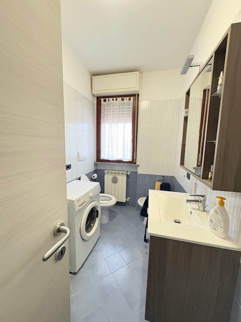 In piccola e ben tenuta palazzina, bilocale arredato a nuovo, con soggiorno con cucina a vista, bagno con doccia e lavatrice, camera matrimoniale, ripostiglio esterno, balcone e box. Libero dal 15 gennaio 2026.