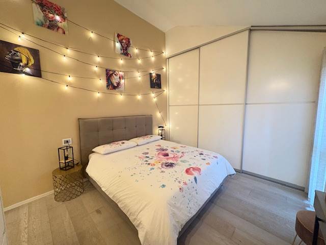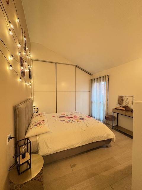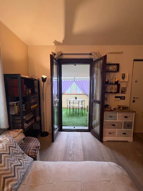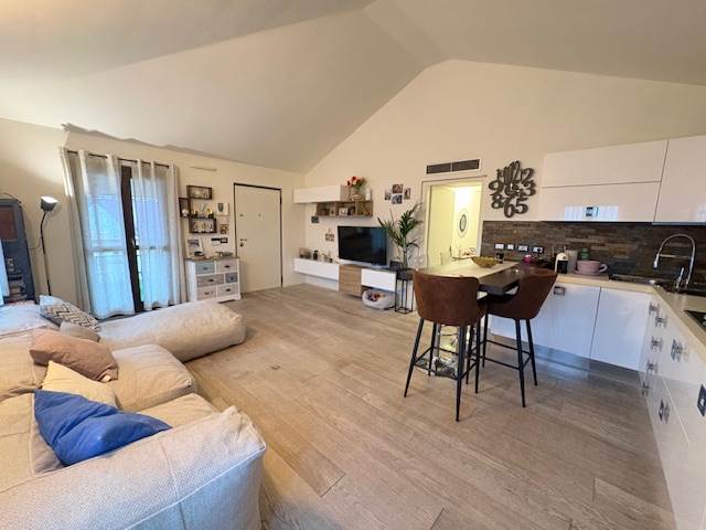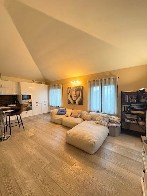 Completamente arredato, mansardato e con un bel terrazzino, è composto da un bel soggiorno con cucina a vista, un ampio bagno e una camera matrimoniale. Balcone, cantina e box completano la proprietà.