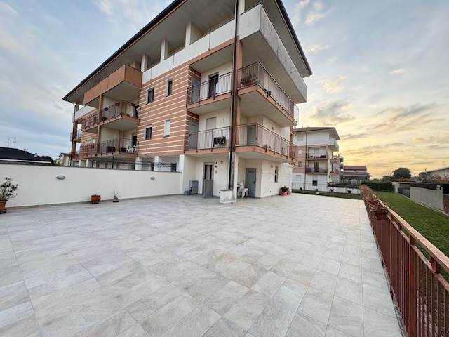 In condominio ben tenuto, interessante appartamentino di 3 vani con grande terrazzo. L'appartamento di 83 mq, è un piano rialzato interno, composto da cucina abitabile, soggiorno, 2 camere, bagno, balcone e terrazzo di 150 mq.. Completano la proprietà la cantina e il box doppio. Libero nella primavera 2026.