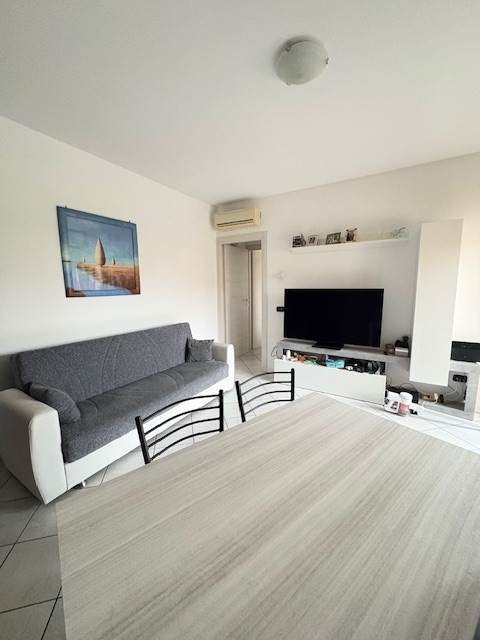 In piccola e ben tenuta palazzina, bilocale arredato a nuovo, con soggiorno con cucina a vista, bagno con doccia e lavatrice, camera matrimoniale, ripostiglio esterno, balcone e box. Libero dal 15 gennaio 2026.
