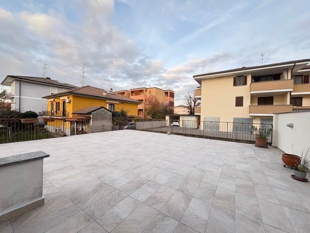 In condominio ben tenuto, interessante appartamentino di 3 vani con grande terrazzo. L'appartamento di 83 mq, è un piano rialzato interno, composto da cucina abitabile, soggiorno, 2 camere, bagno, balcone e terrazzo di 150 mq.. Completano la proprietà la cantina e il box doppio. Libero nella primavera 2026.